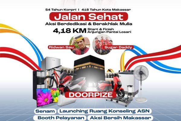 Ikolom.Makassar – Dalam rangka memperingati 54 tahun Korps Pegawai Republik Indonesia (Korpri) sekaligus 418 tahun Kota Makassar, Pemerintah Kota Makassar akan mengadakan kegiatan Jalan Sehat Korpri dengan tema “Aksi Berdedikasi & Berakhlak Mulia”. Acara ini dijadwalkan berlangsung di Anjungan Pantai Losari pada Sabtu, 8 November 2025, mulai pukul 06.00 WITA. Rute jalan sehat ini menempuh…